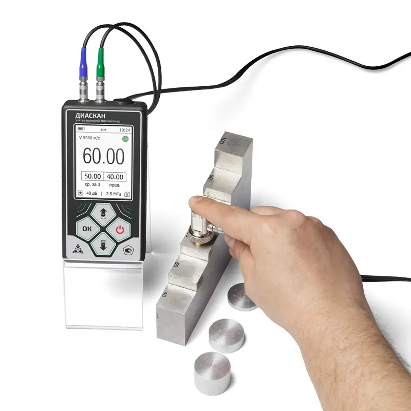 | Предел допускаемой основной погрешности при измерении толщины, δн, мм | ± (0,05 + 0,01·dx), где dx – толщина измеряемого образца, мм |
