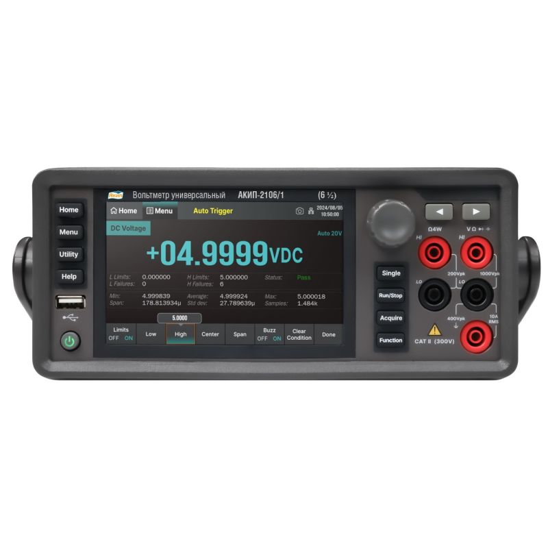 Вольтметр универсальный АКИП-2106/1 с опцией SC представляет собой высокоточный многофункциональный измерительный комплекс, предназначенный для решения широкого спектра задач в лабораторных и производственных условиях. Его ключевым преимуществом является исключительная точность, характеризуемая базовой погрешностью всего 0,0035%, что делает его незаменимым для проведения прецизионных измерений и поверочных работ.